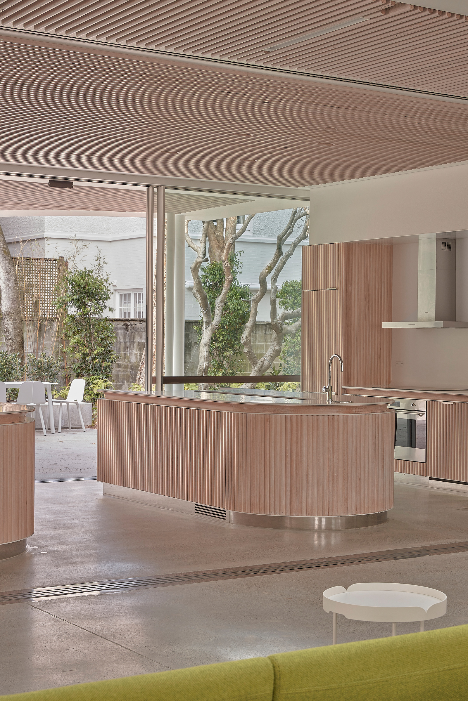 "The Riverine profile creates a link between the contemporary and historical spaces. The geometry of the half-round curve speaks to arched windows, bay windows, and ornate sandstone mouldings on the Federation building," says Kachwalla.