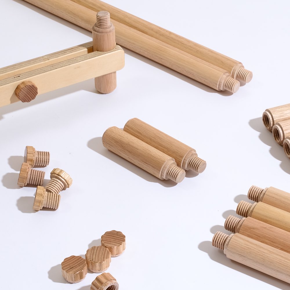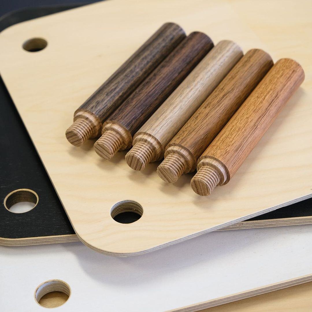A key element of Like Butter’s product range is the Kitta Parts modular shelving system. This system relies heavily on the consistent supply of high-quality Tasmanian oak dowels from Porta. Each year, Like Butter purchases approximately three kilometers of 35mm diameter dowels from us, which are crucial for the production of Kitta Parts. Additionally, they use 25mm dowels for newer products like the thread board and threaded peg system, and are beginning to incorporate larger sizes, such as 45mm dowels, for new product lines including a bed design.