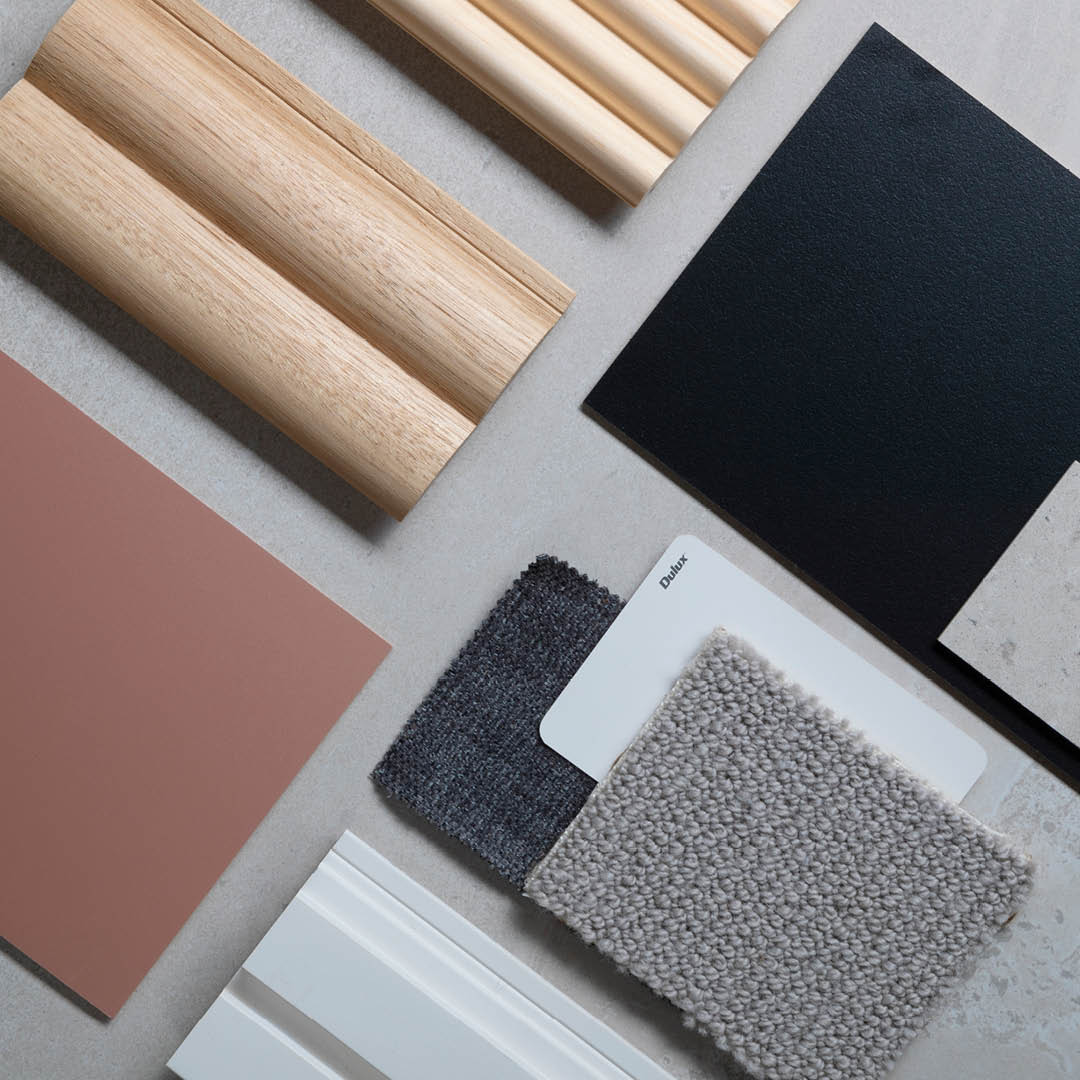 Once you are happy with your mood board, collect physical samples (if you haven’t already) and smaller items that will be used in the space, such as cushions, throws, homewares, taps, etc. See how these items will look in the space, particularly during different times throughout the day and night.