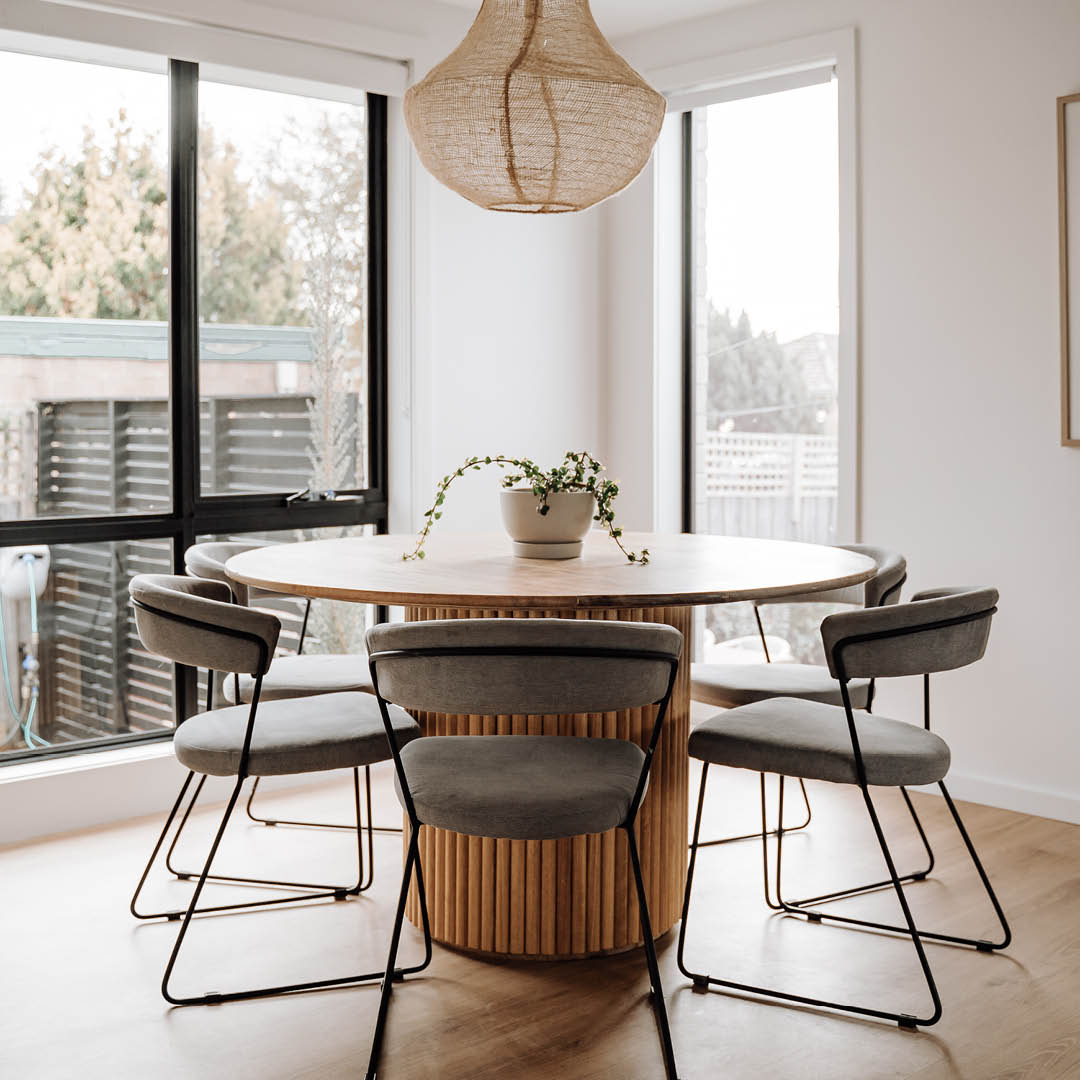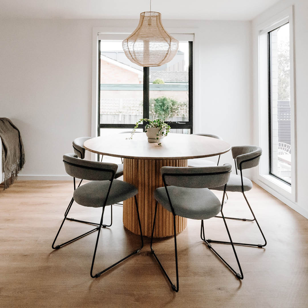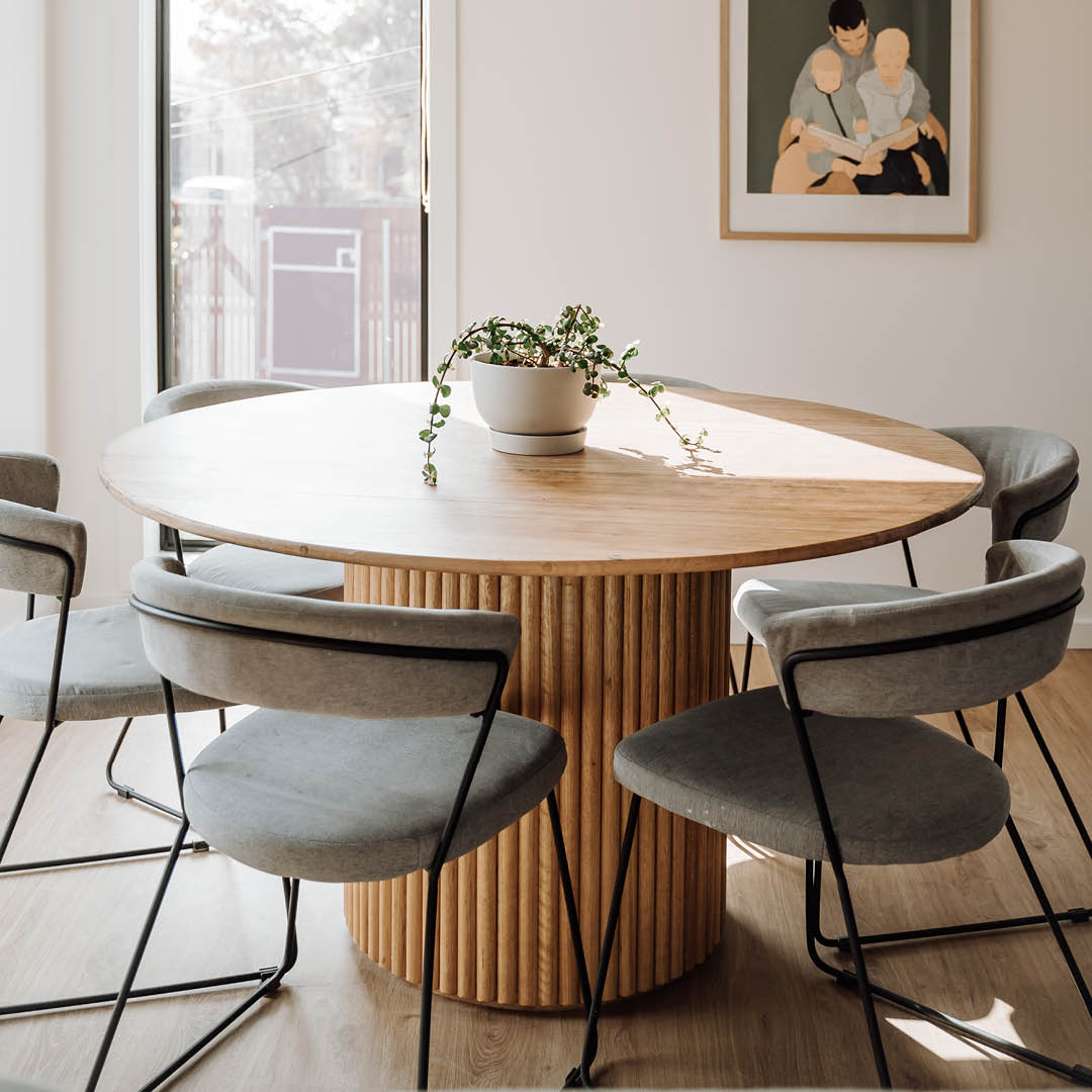 Measuring 1350mm in diameter and 760mm high, “This dupe of the Globe West Tully cost us $560, and we absolutely love using a round table in our home,” says Katrina.