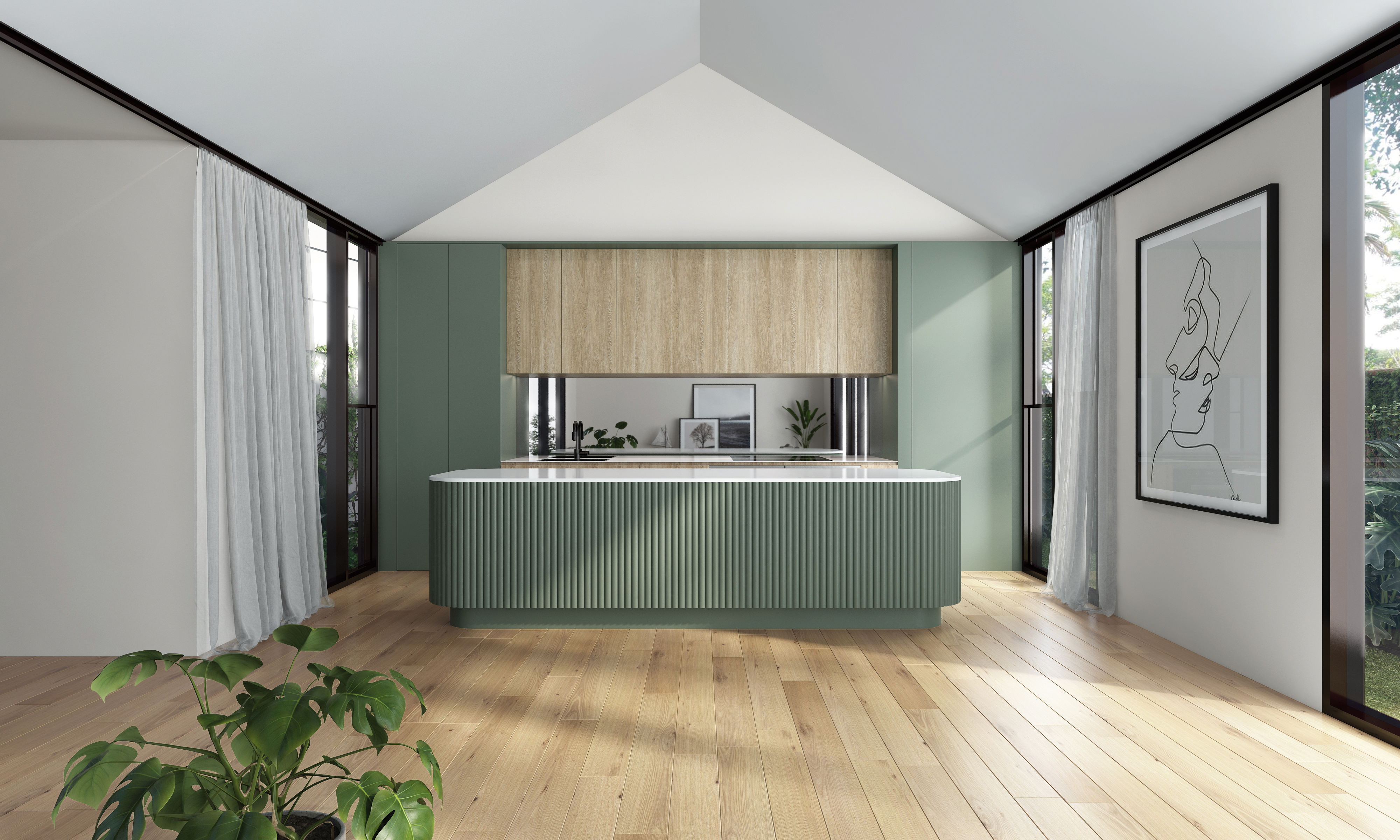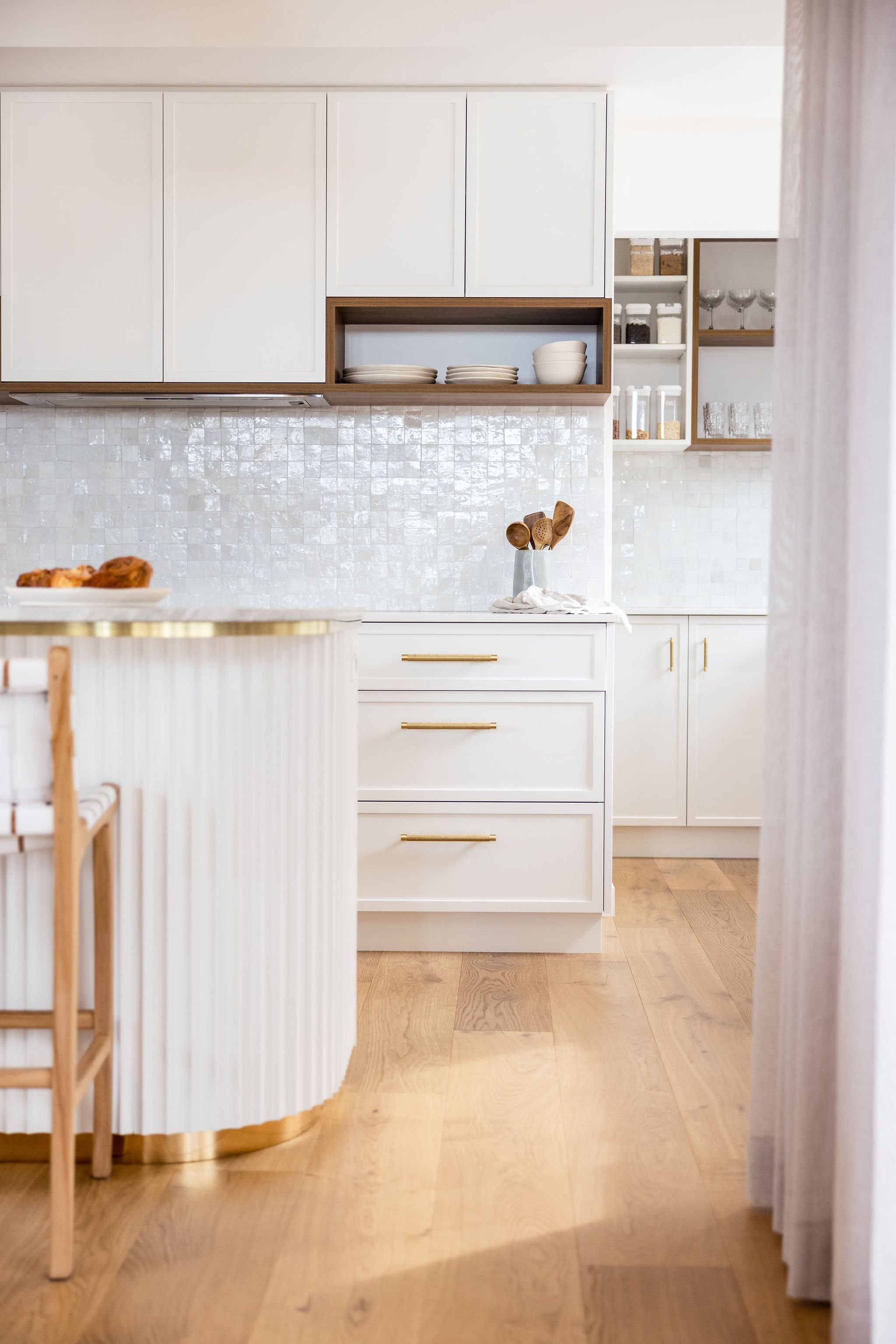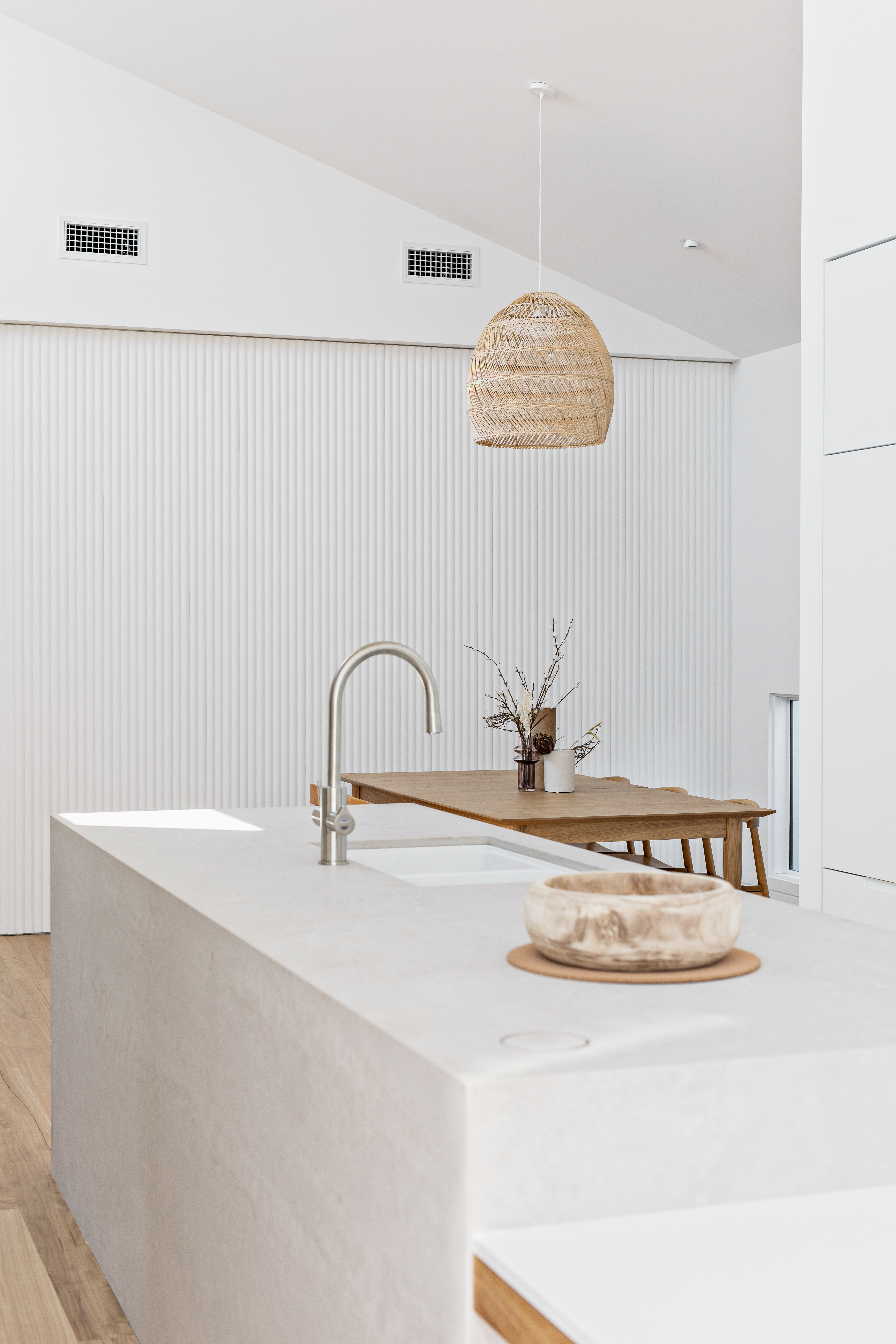 As a textured canvas, Contours in Primed Pine soften long, sleek lines and are perfect as a feature in a residential or commercial project, such as in the kitchen, bedroom, bathroom, hallway, lounge, dining room, ceiling accent, or reception desk - adding richness and depth to the material palette.