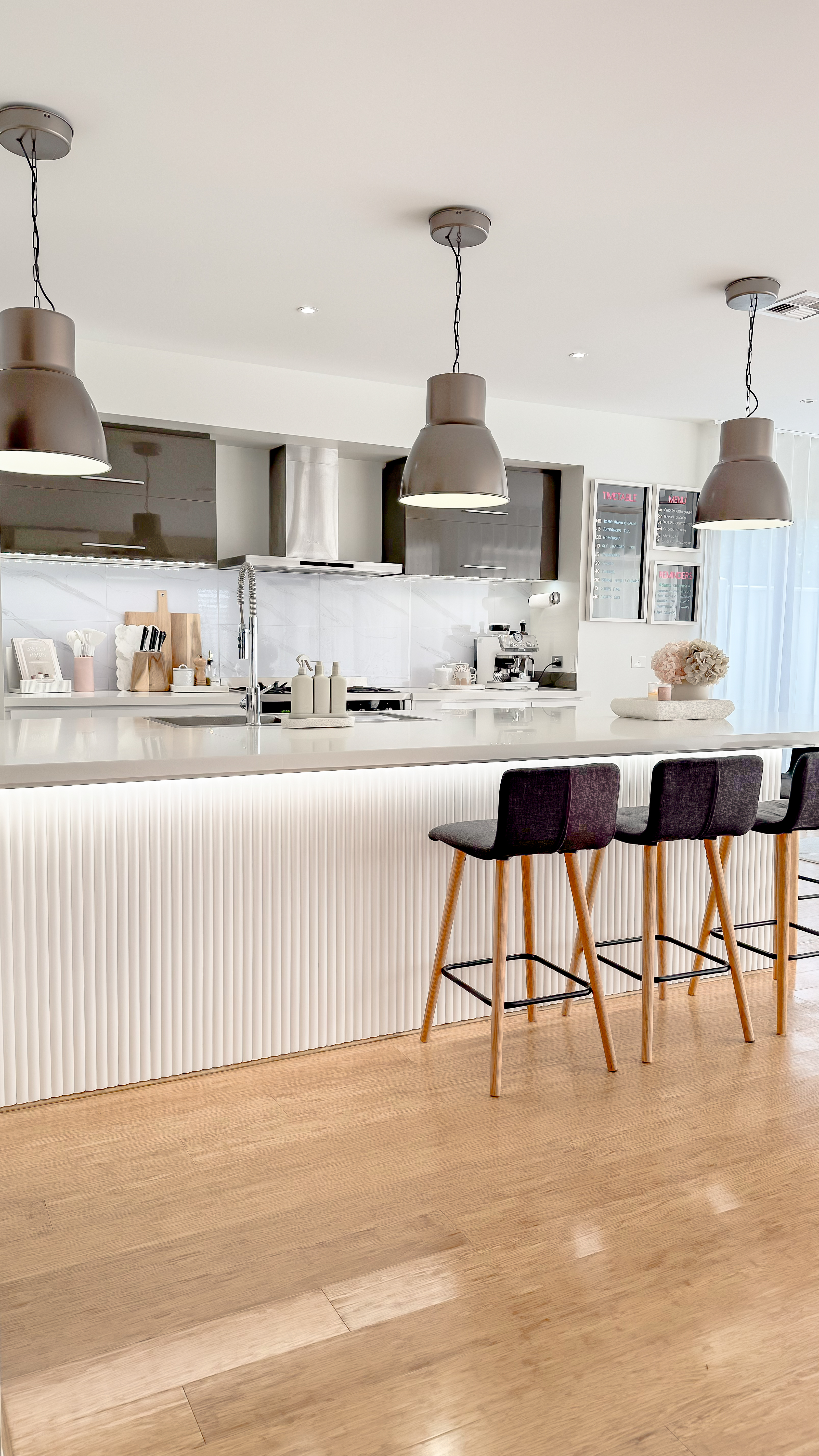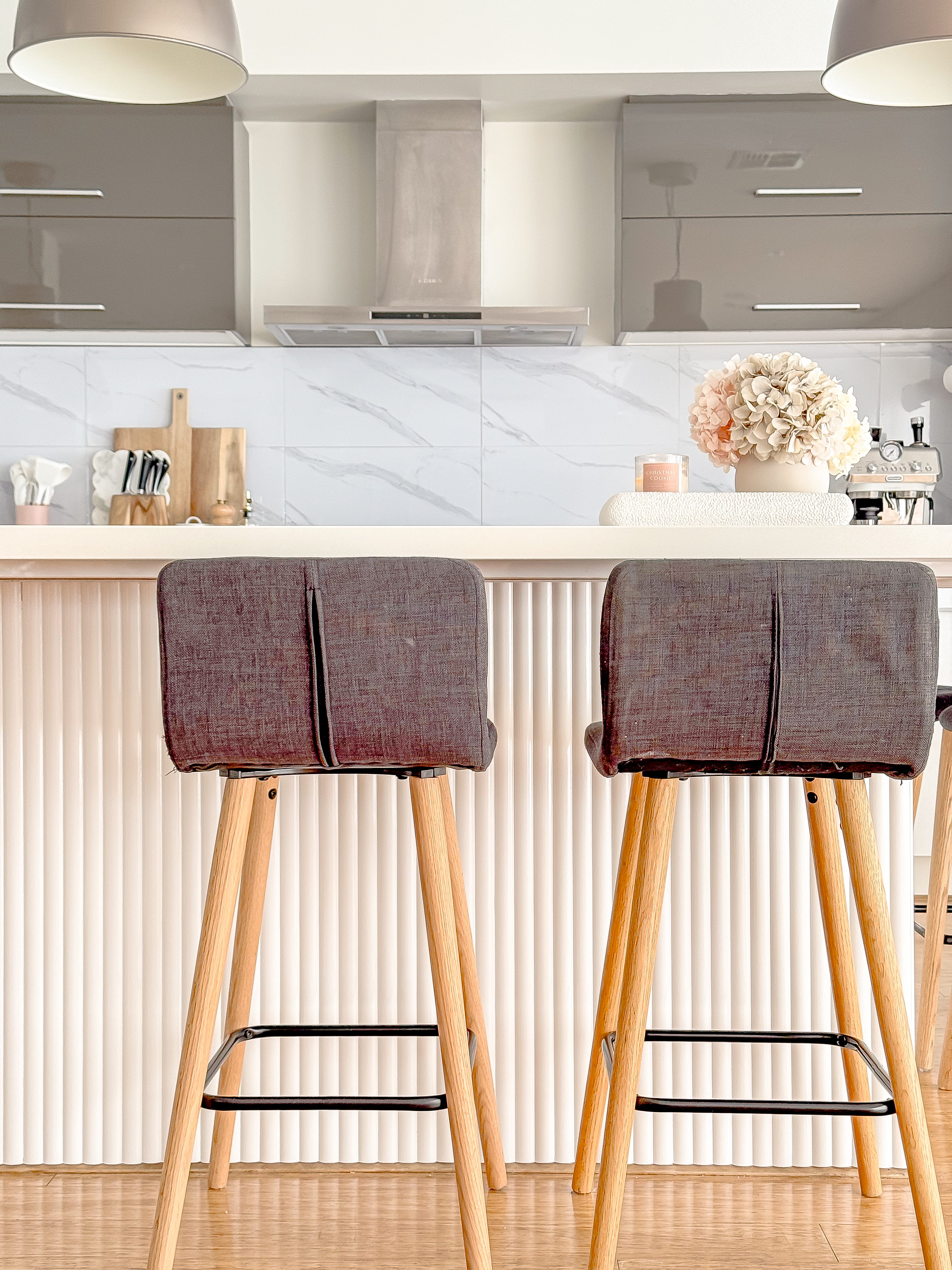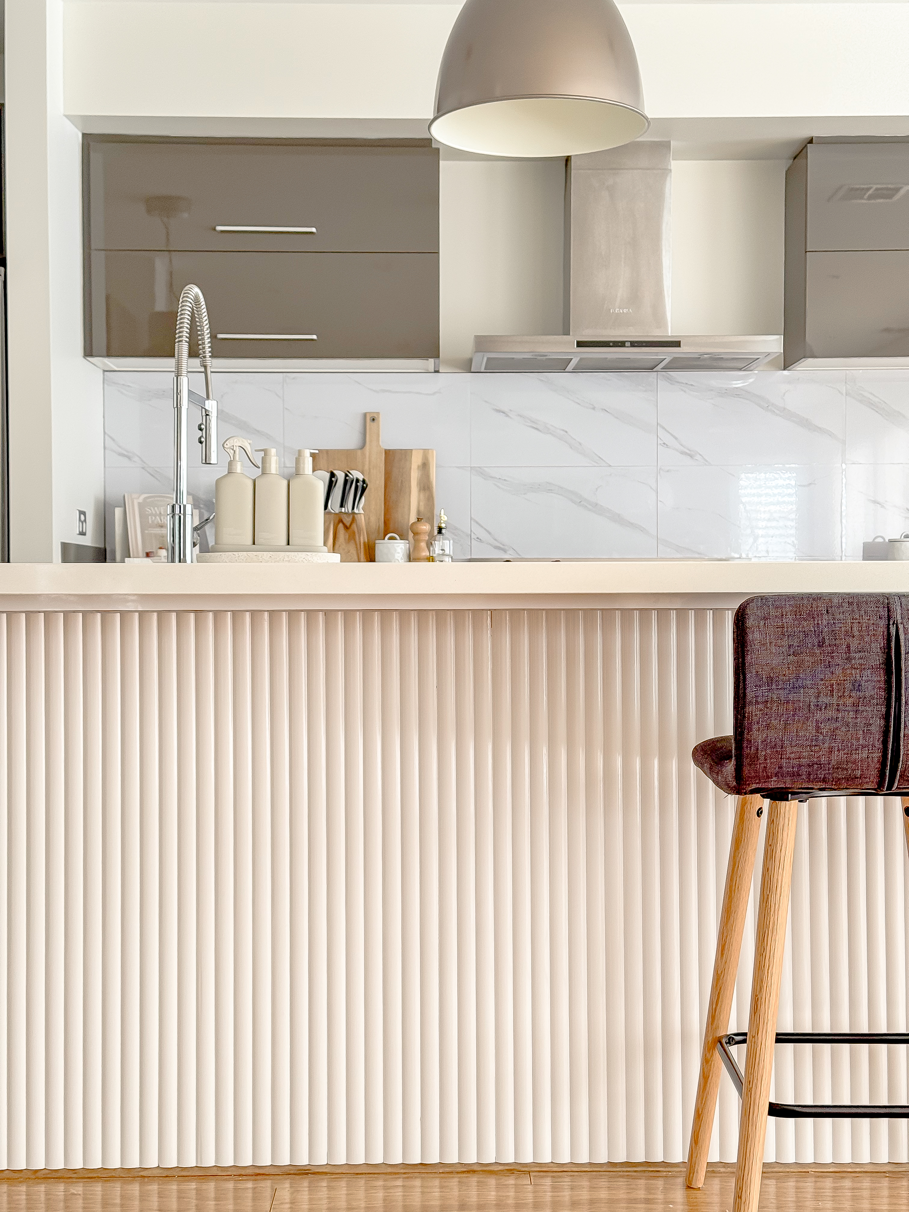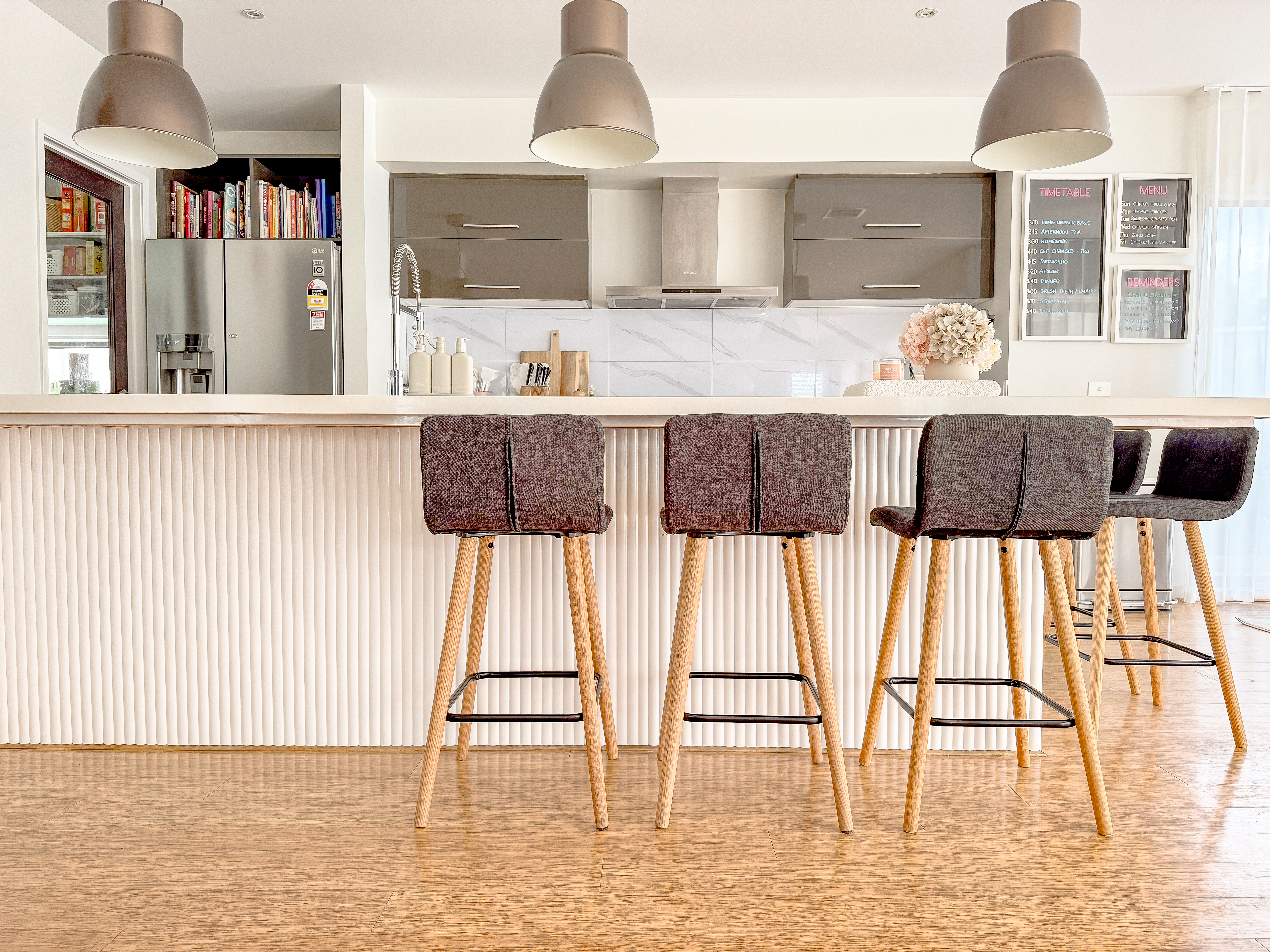 I’ll be the first to admit that there really wasn’t much wrong with our kitchen under-bench before the panelling. It had a classic glossy white finish. However, after his initial scepticism and much convincing, my husband would be the first to admit how much better it now looks with the panelling!