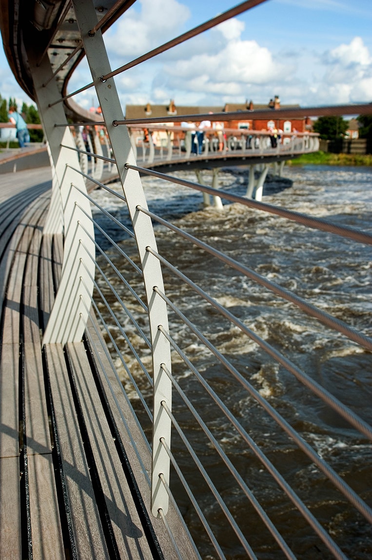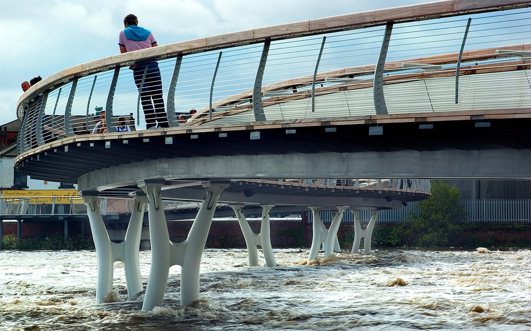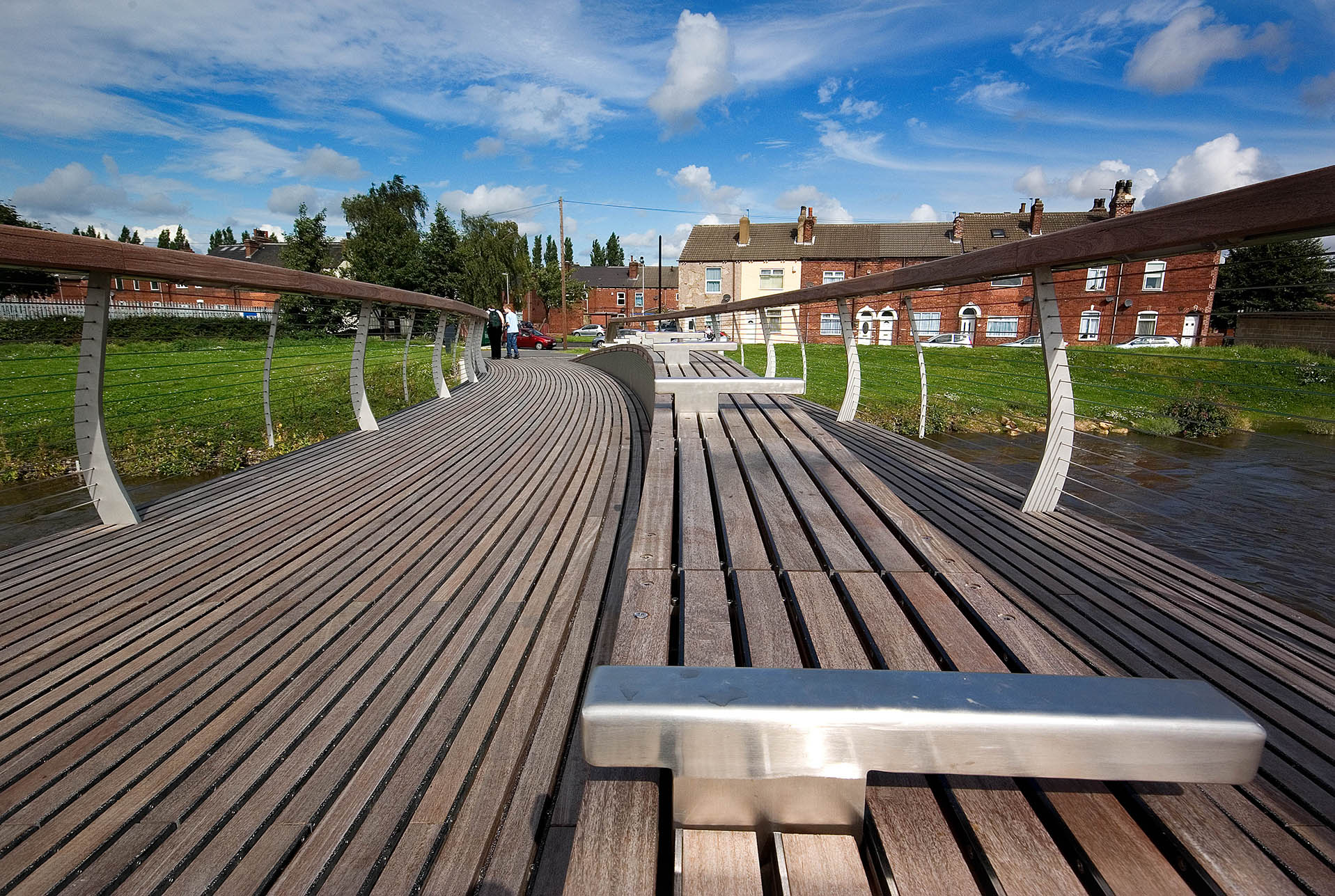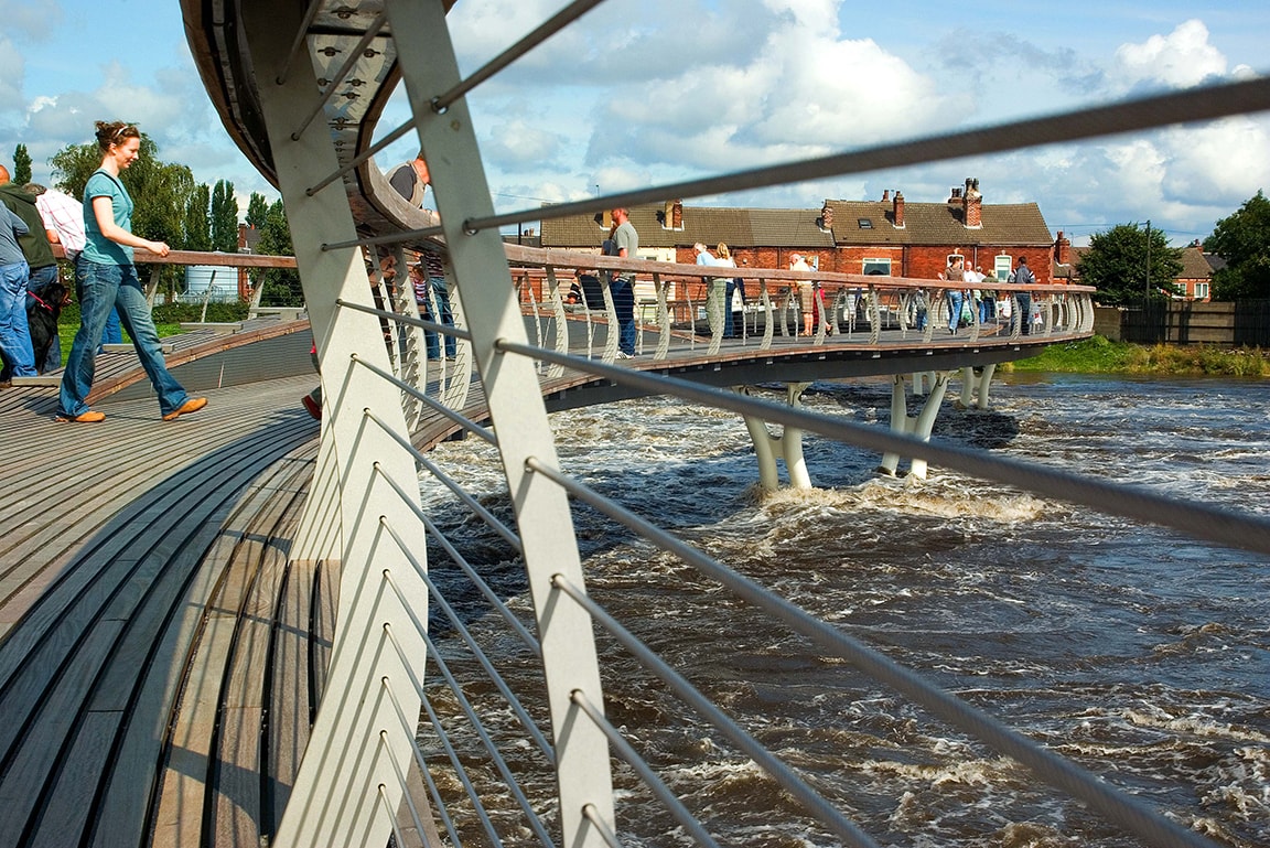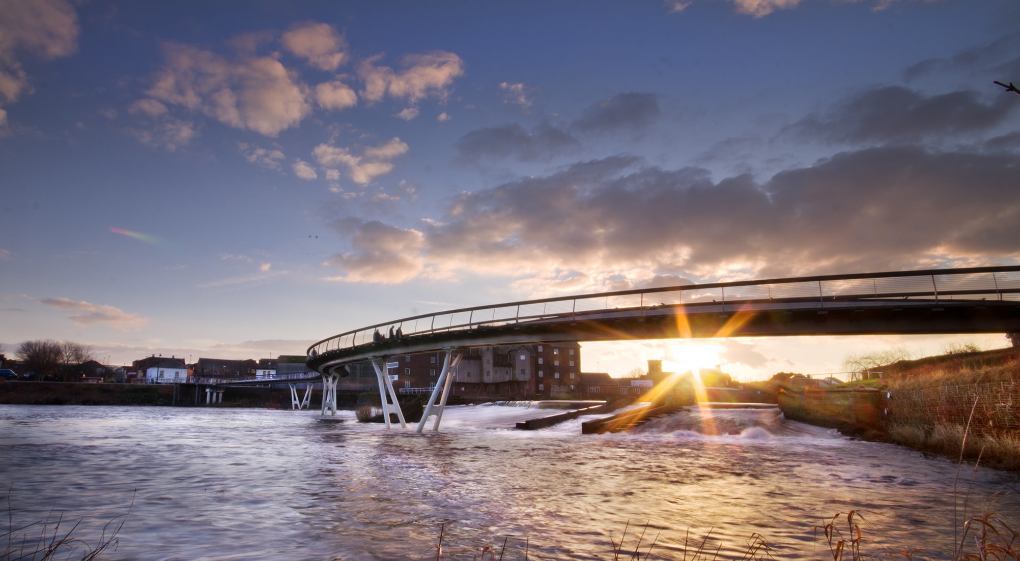 As part of a series of regeneration projects, the 130m curved footbridge was made to be a safer, pedestrian-friendly route in place of the 200-year-old Victorian bridge downstream.