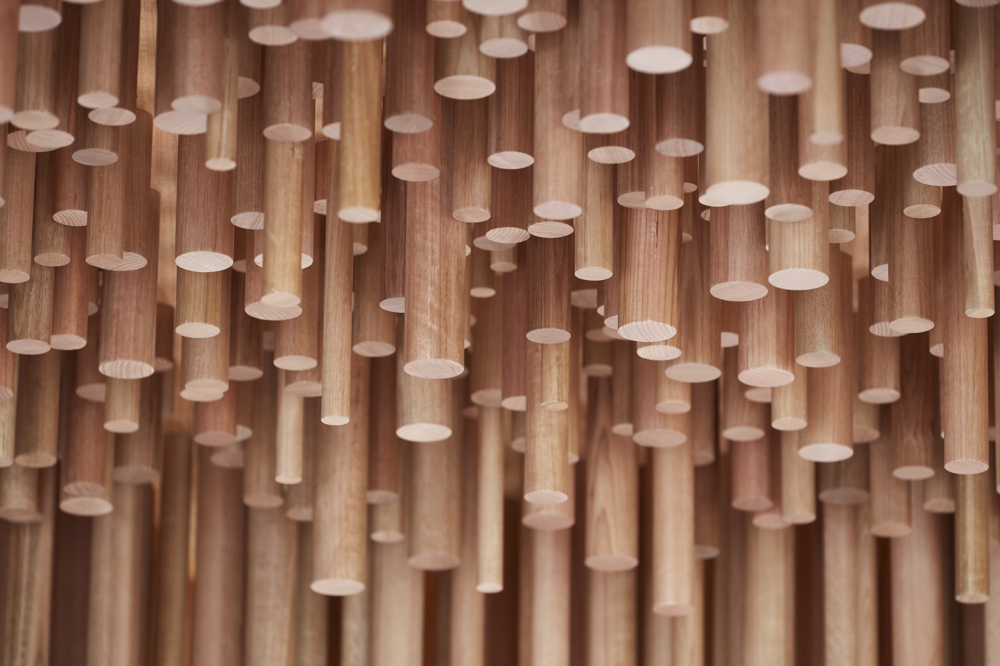 "Dowel was the perfect material to be able to sculpt our ceiling with as it has a universality of tone and came pre made in a variety of dimensions. The convenience of the pre made half dowels then gave instant texture to our wall,"