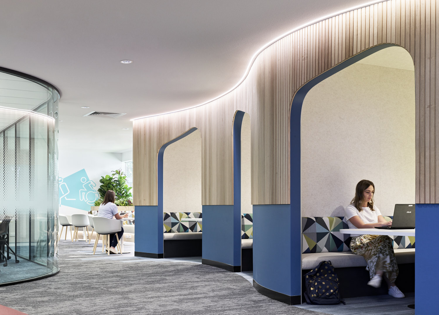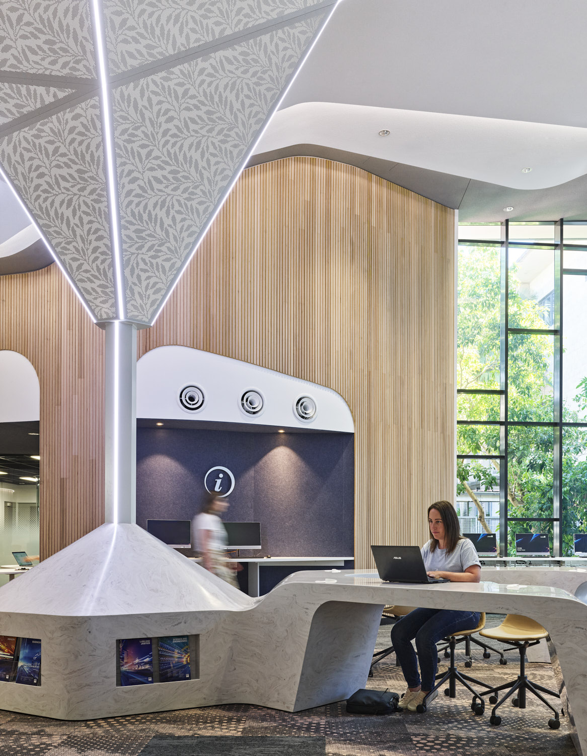Inspired by key aspects of Australian culture, the design of the QUT reflects a sense of collaboration, community, creativity and supportiveness. “The College was a primary opportunity to represent key aspects of Australian culture, whilst constituting a place of learning, growth, development and change, allowing both students and staff to flourish,” explains Brooke Proctor, Interior Designer, PDT Architects.