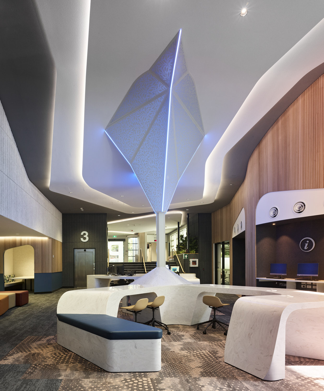 The sculptural tree in the entry foyer encapsulates the core elements of growth, development and change. “It has been a huge transformation from what was there originally and to see the change happen and the positive effects it’s had on the College is by far the most rewarding part of my job,” says Brooke. “Entering the foyer, you get a welcoming sense of belonging that’s inherently created by the open, soft and natural palette of the fit-out.”