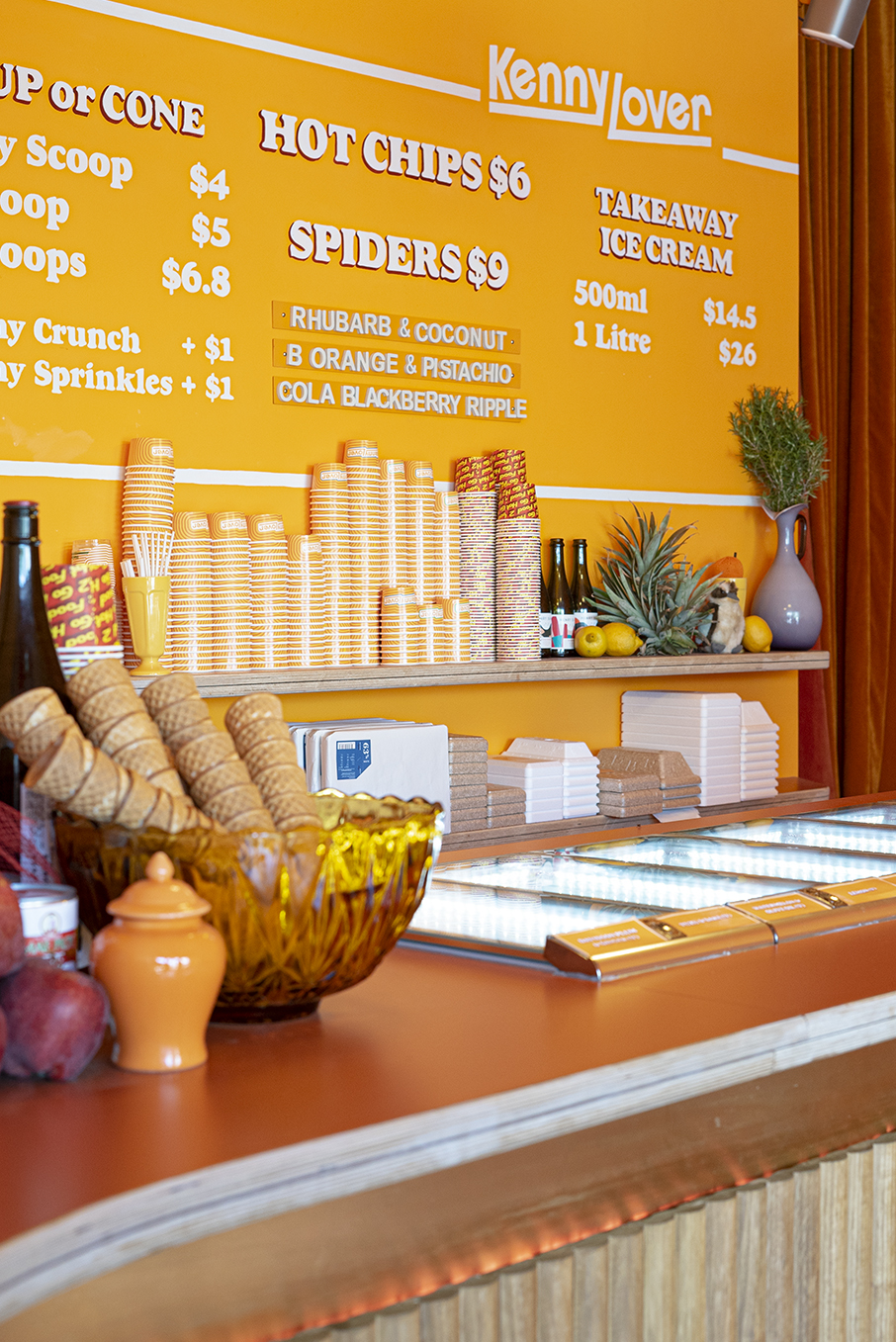 An old-school Australiana themed space filled with colour and texture, Kenny lover is a chefs playful approach to ice-cream without the fuss.