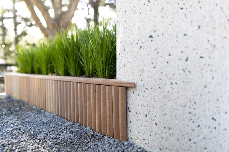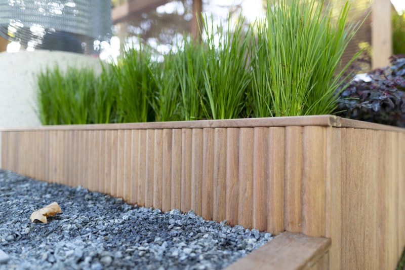 “The Welcome Garden has been designed with interaction at its core... it doubles as a place for show-goers to interact with the landscape as well as providing a forum for outdoor presentations, talks and activities at the show… The beautiful certified Porta Cumaru hardwood timber adorns the decking, loggia and wall cladding demonstrating how sustainable timber has a place in every landscape.” Mark Browning