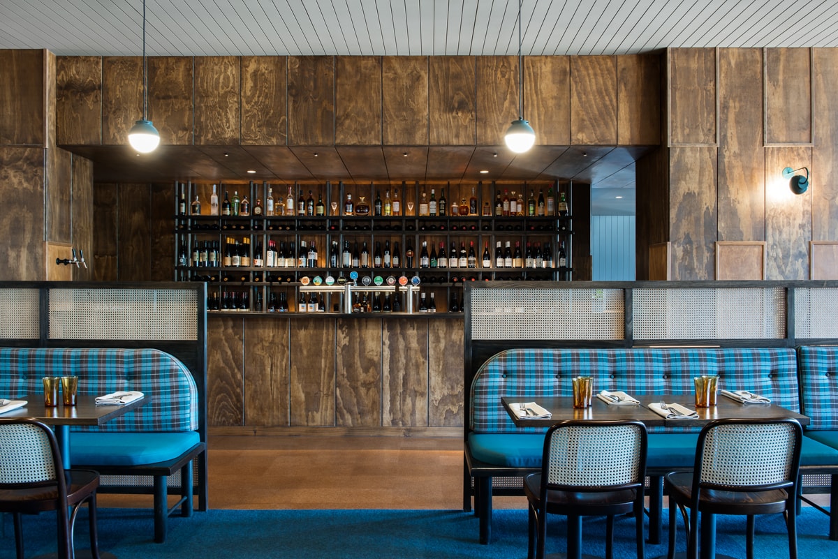 Timber panelling, cleverly paired with warm tartans and painted timber mouldings, was used in the front bar to create a modern colour palette, making the interior space feel grand, yet casual and familiar.