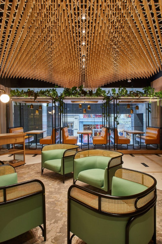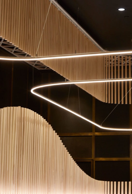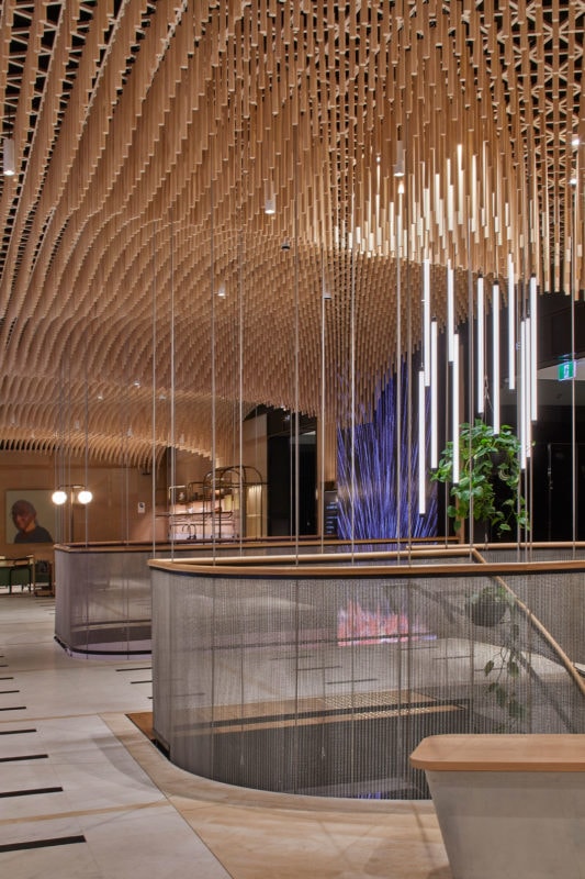 “The ceiling creates a rhythm of undulating forms that reference the classical elegance of the GPO, while encouraging a slowing down and the calmness of being immersed in a forest.” - Adriano Pupilli Architects