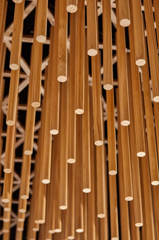 A key design element to create the sanctuary like space - was the timber dowel canopy.