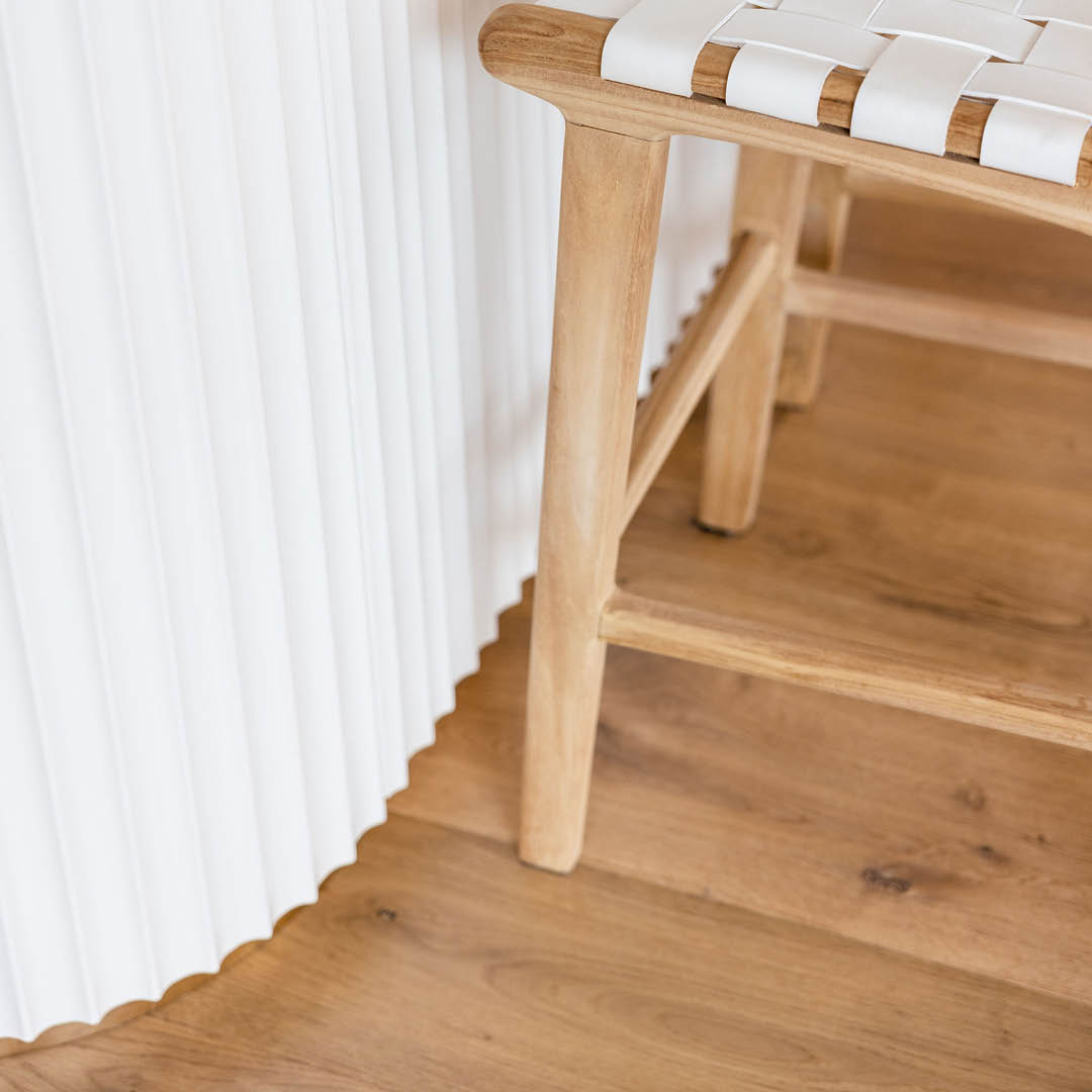 As a textured canvas suitable for straight and curved applications, Porta Contours in Cirque are perfect as a feature in a kitchen. “The fluted look of Cirque softened the look of an otherwise plain island front. It added in some much needed texture to a white kitchen,” explains Mel. “We are all for a white kitchen so long as you have a few textural elements such as timber, contrast and shifts in sheen level.”