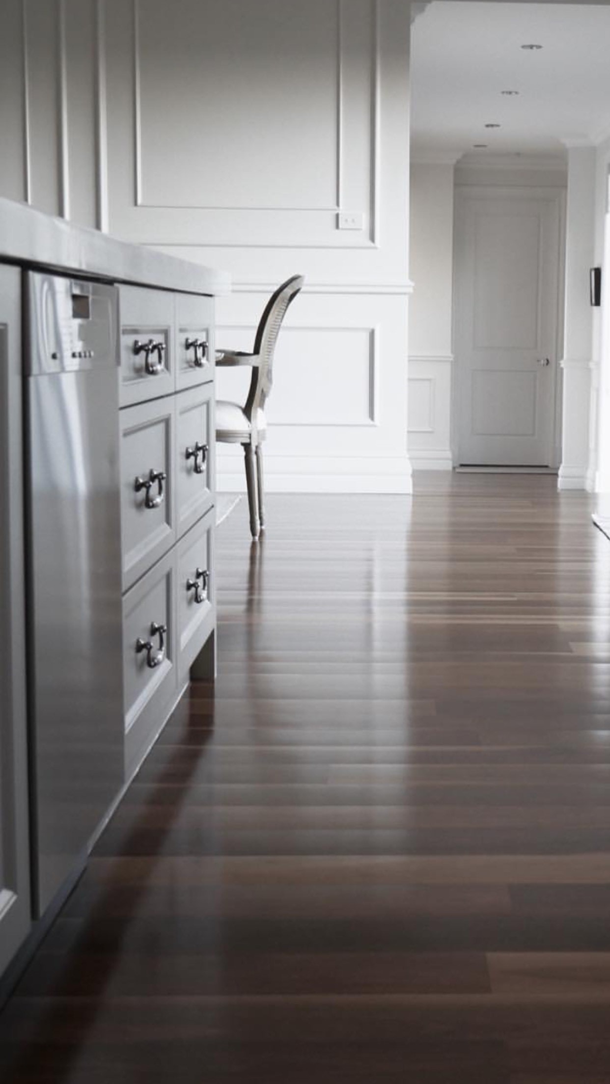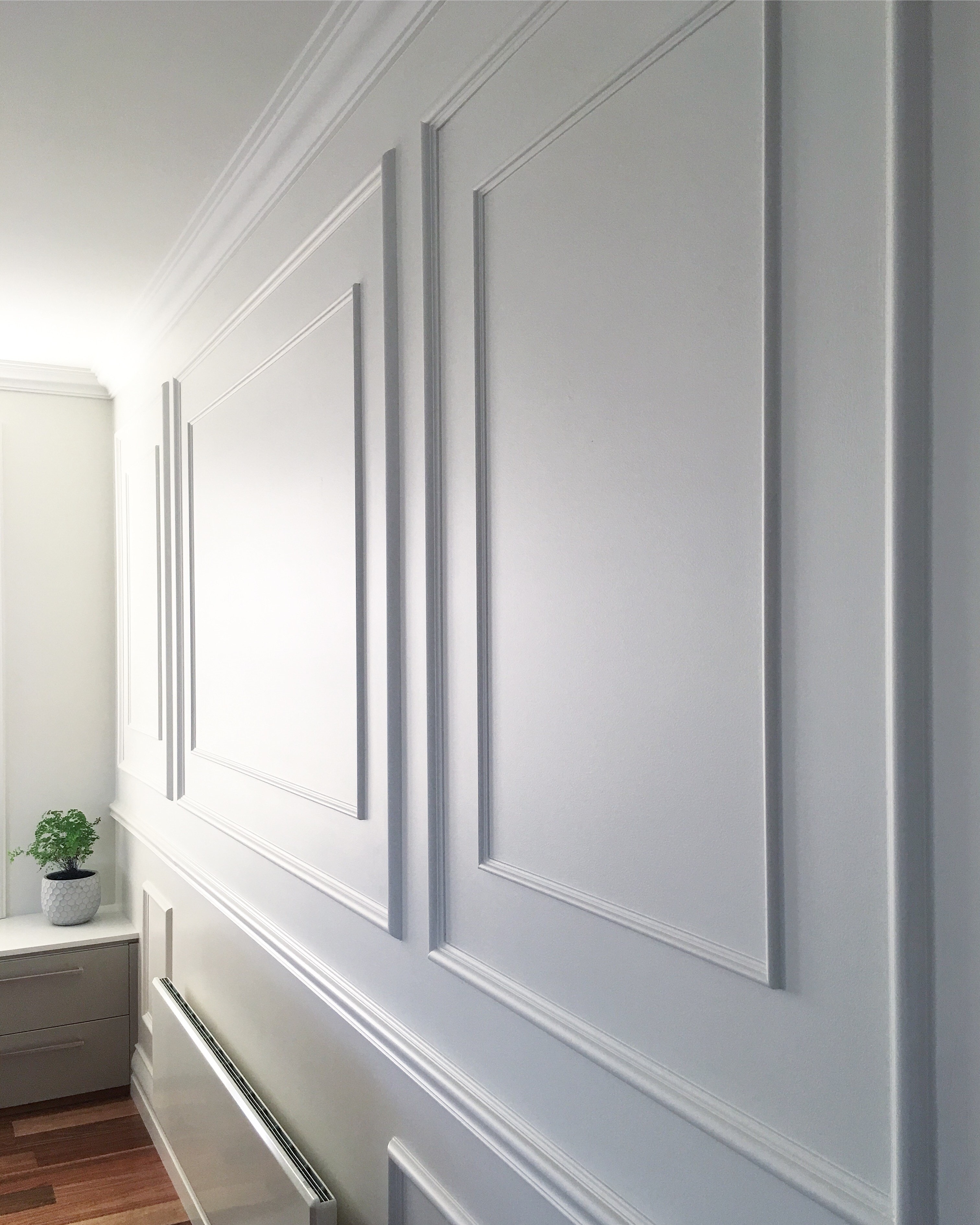 This beautiful home uses timber mouldings to add depth and texture to the walls. Used in the kitchen, dining, hall and bedrooms – the mixing of profiles creates a refined interior style.